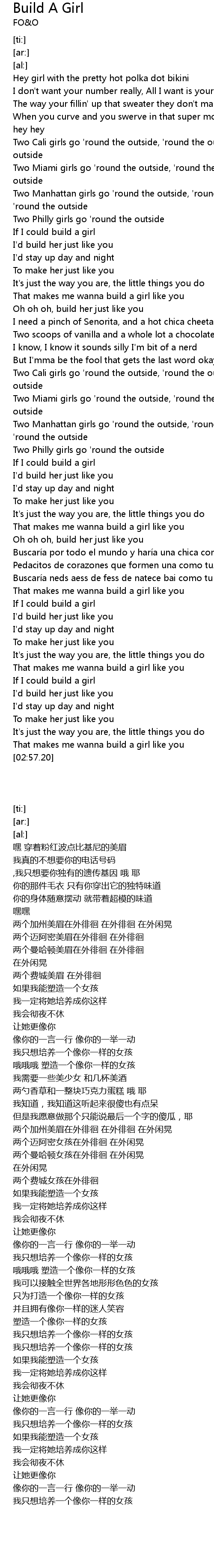 | [00:59.95] | Oh oh oh, build her just like you |