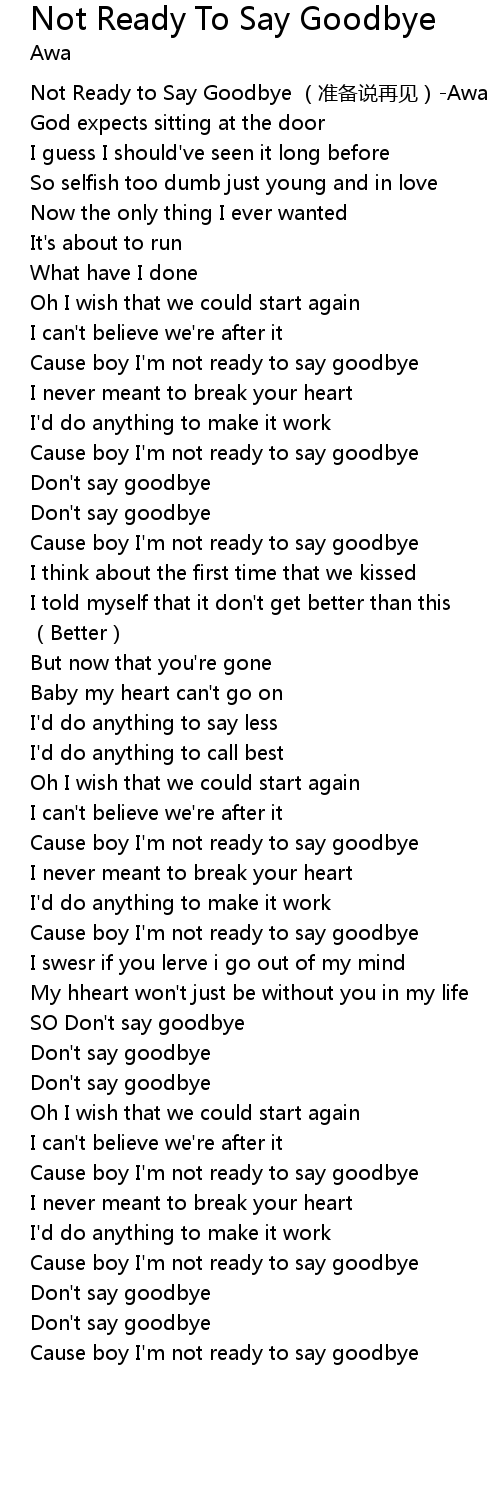 | [00:00.00] | Not Ready to Say Goodbye zhun bei shuo zai jian Awa |