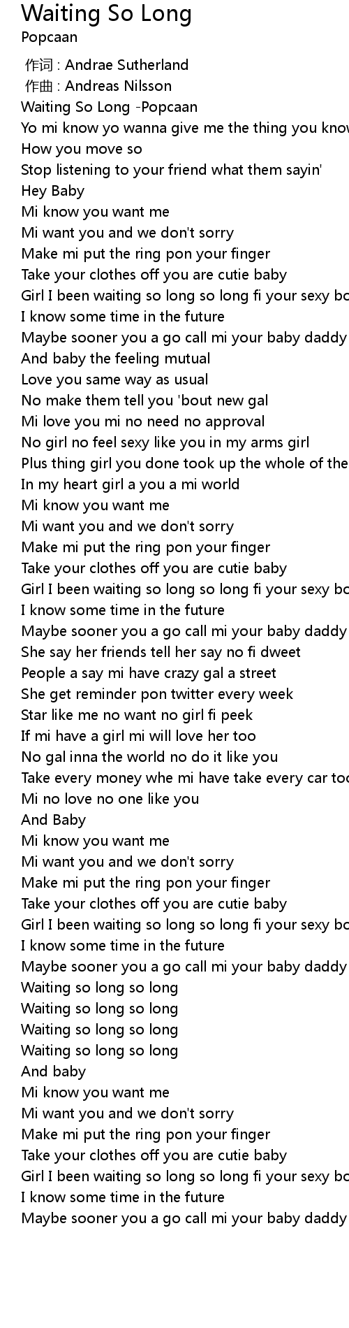 | [01:52.289] | Girl I been waiting so long so long fi your sexy body |