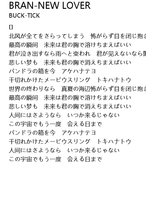 | 悲しい梦も 未来も君の胸で消えちまえばいい | |