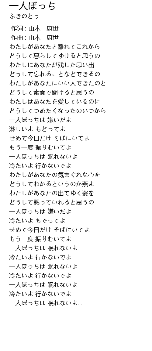 | [05:04.000] | 一人ぽっちは 眠れないよ |