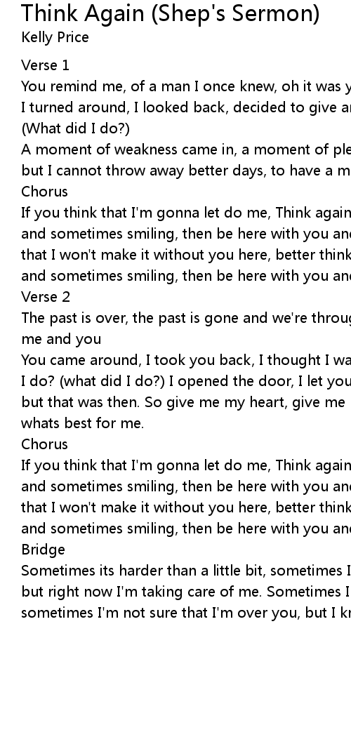 If you think that I'm gonna let do me, Think again, because I'd rather be alone and sometimes smiling, then be here with you and always crying. If you think that I won't make it without you here, better think again, i'd rather be alone and sometimes smiling, then be here with you and always crying. |