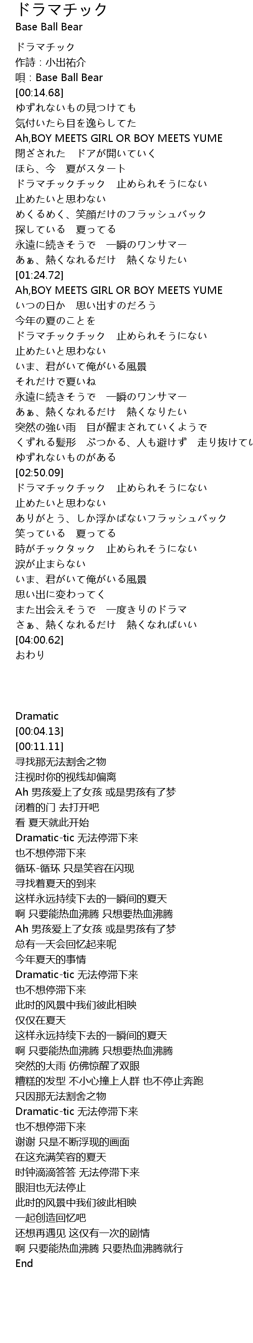 | [03:14.40] | ドラマチックチック 止められそうにない |