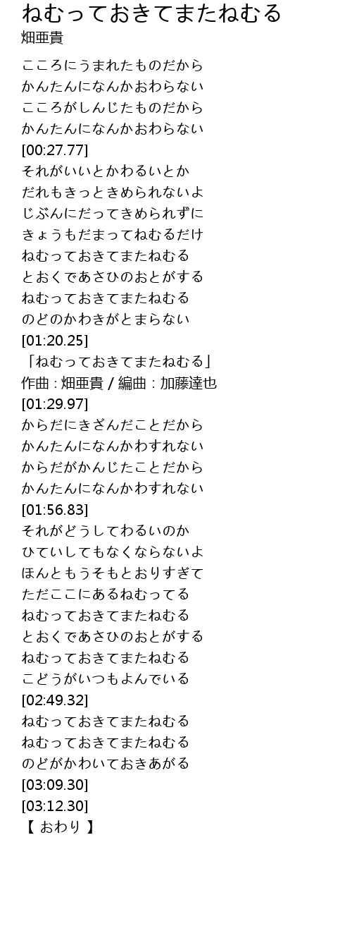 | [02:56.98] | ねむっておきてまたねむる |