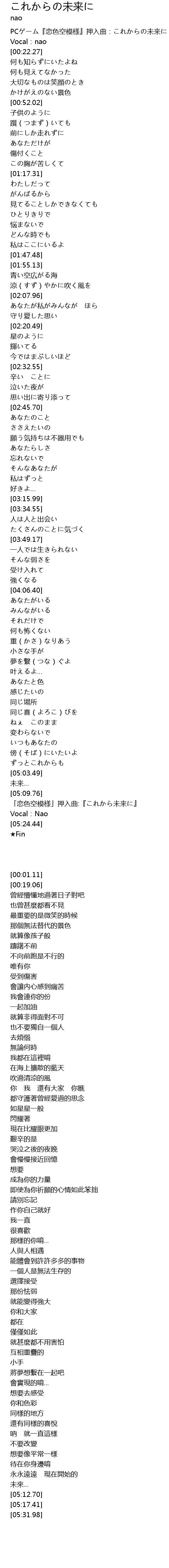 | [05:12.70] | 「恋色空模様」押入曲:『これから未来に』 |