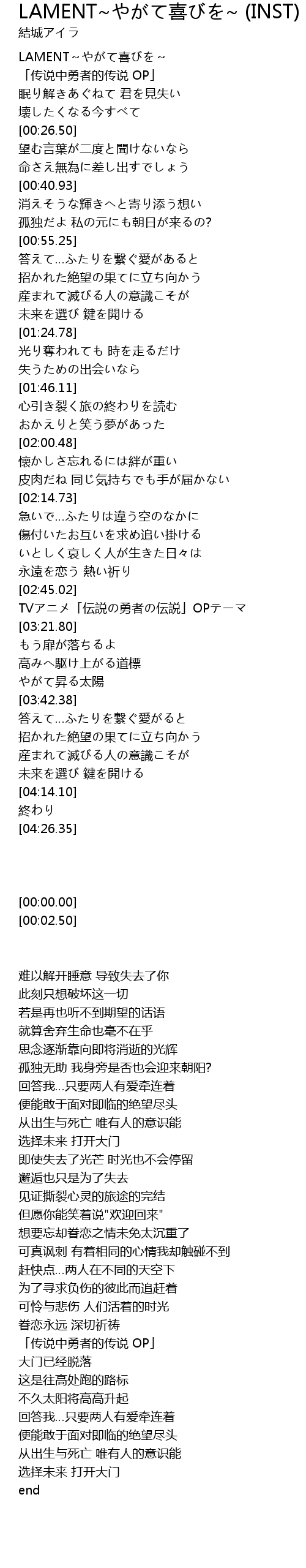 | [00:02.50] | 「传说中勇者的传说 OP」 |