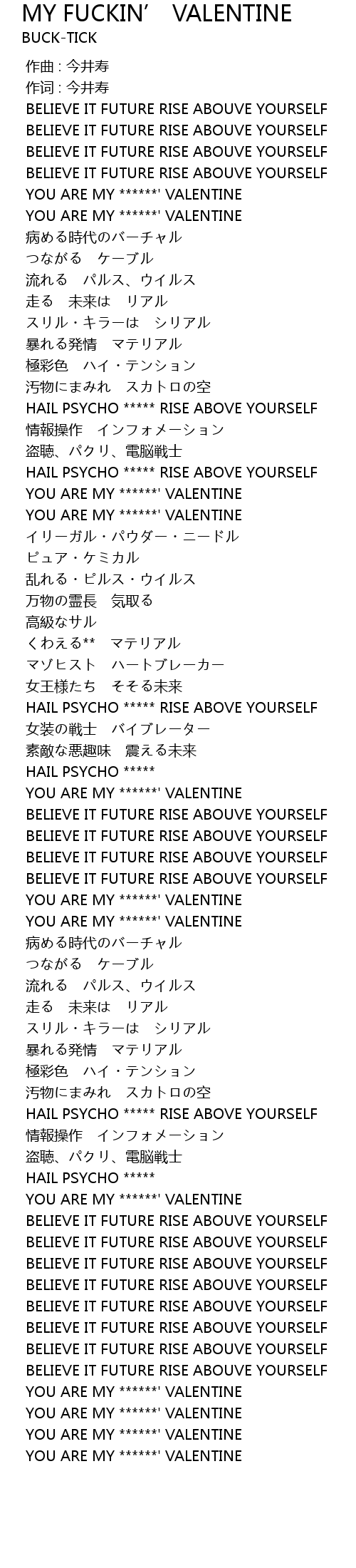 | [02:35.574] | YOU ARE MY ******' VALENTINE |