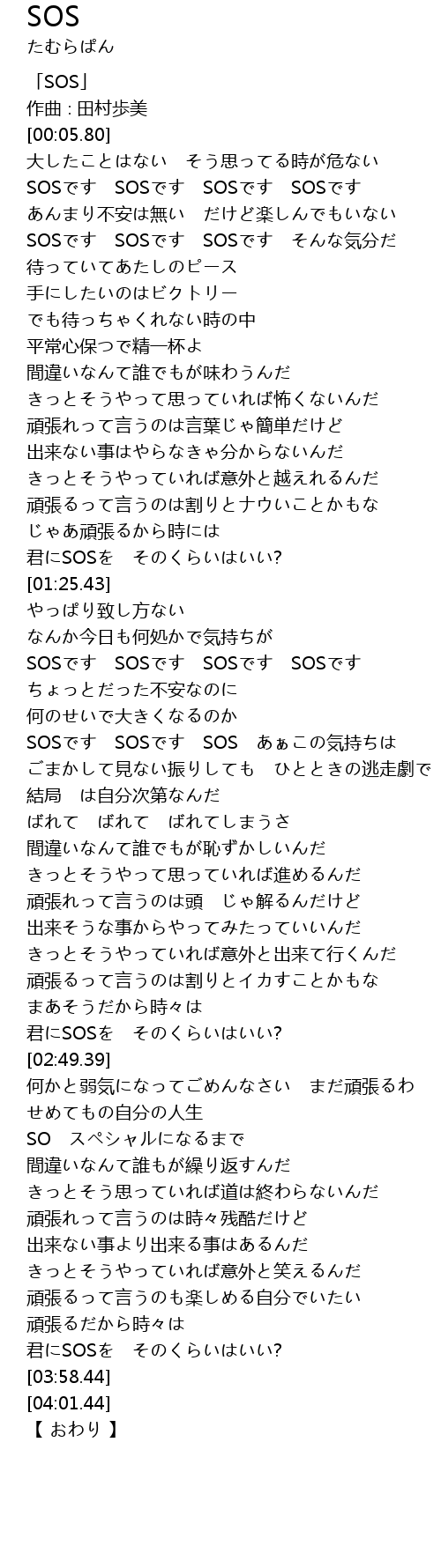 | [01:36.62] | SOSです SOSです SOSです SOSです |