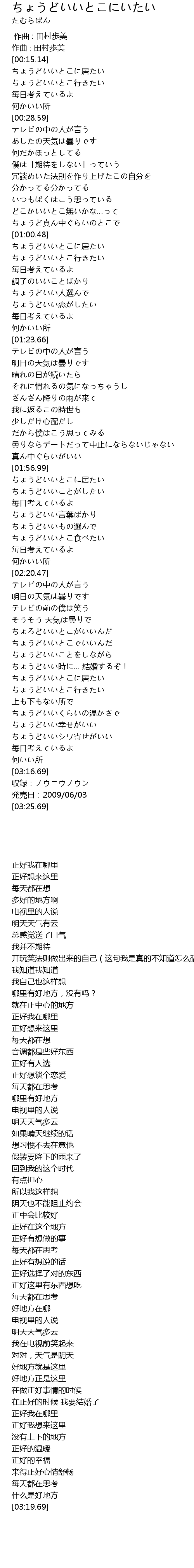 | [00:19.72] | ちょうどいいとこ行きたい |