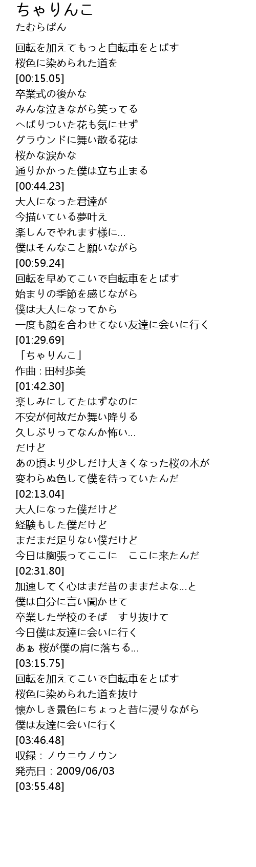 | [01:31.30] | 「ちゃりんこ」 |