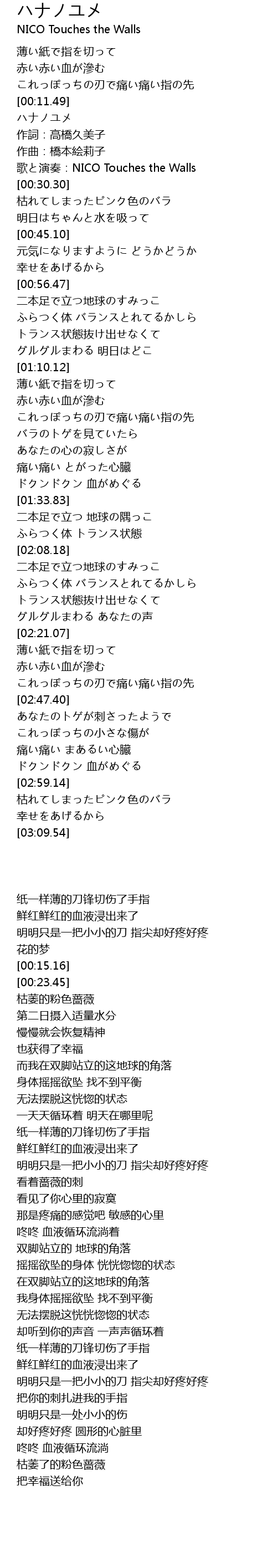 | [00:23.45] | 歌と演奏:NICO Touches the Walls |