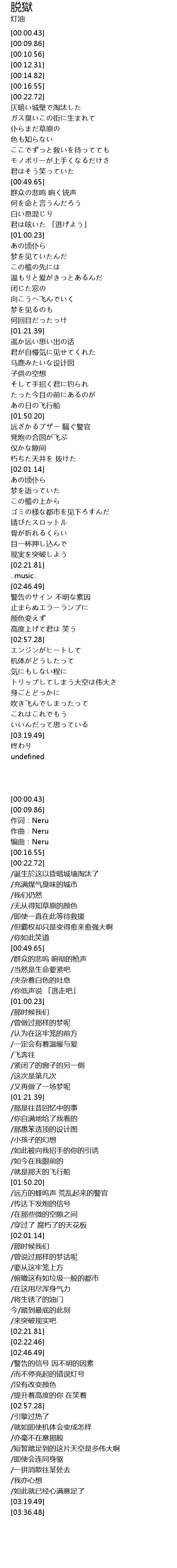 | [00:33.50] | ガス臭いこの街に生まれて |