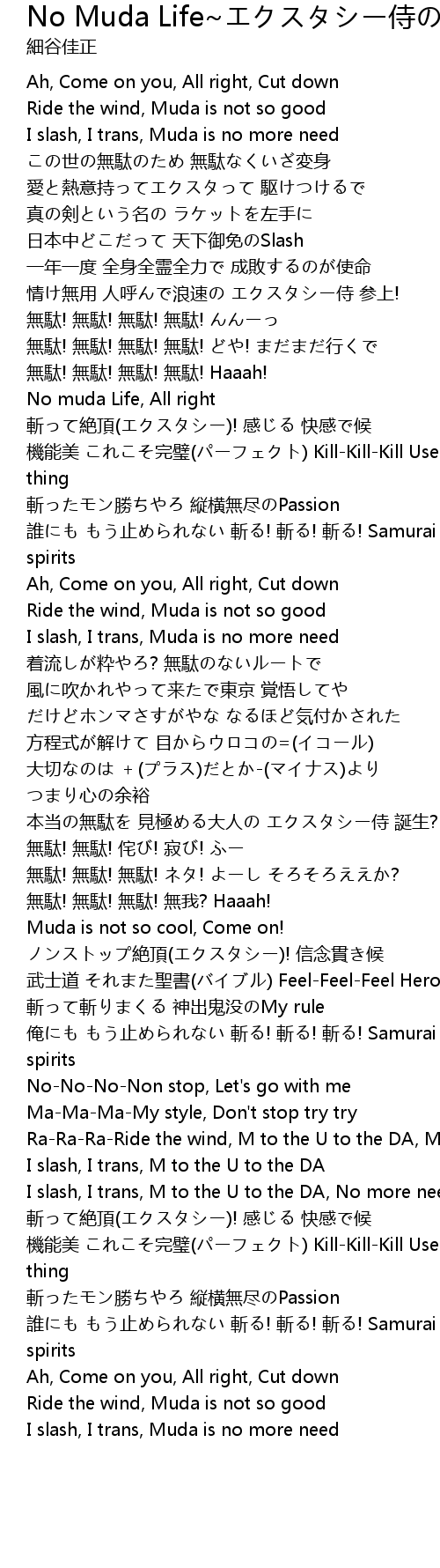 | [03:29] | RaRaRaRide the wind, M to the U to the DA, Muda |