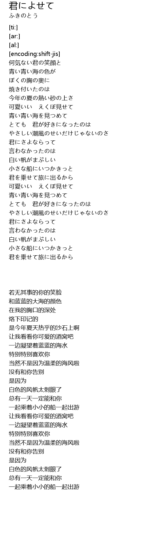 | [01:59.43] | やさしい潮風のせいだけじゃないのさ |