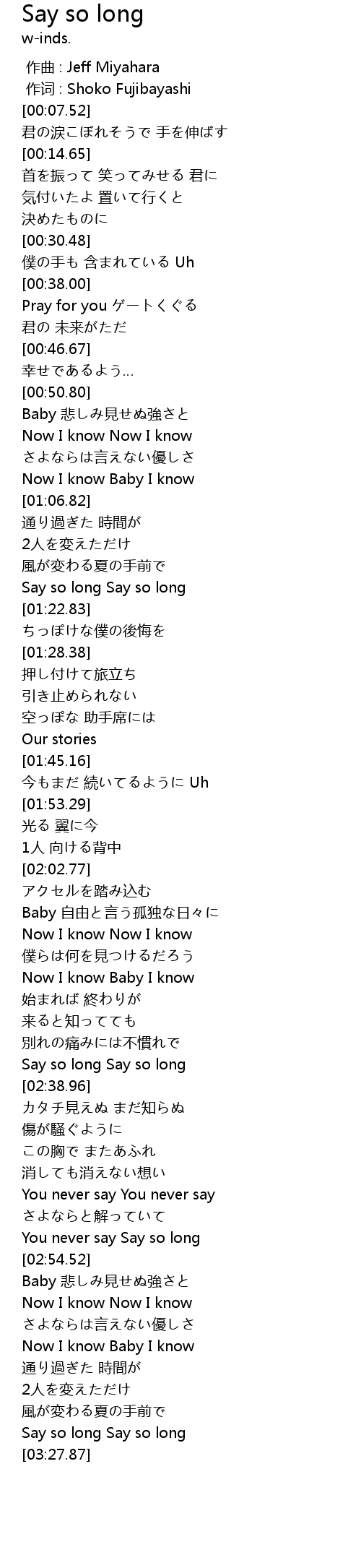 | [03:23.93] | Say so long Say so long |