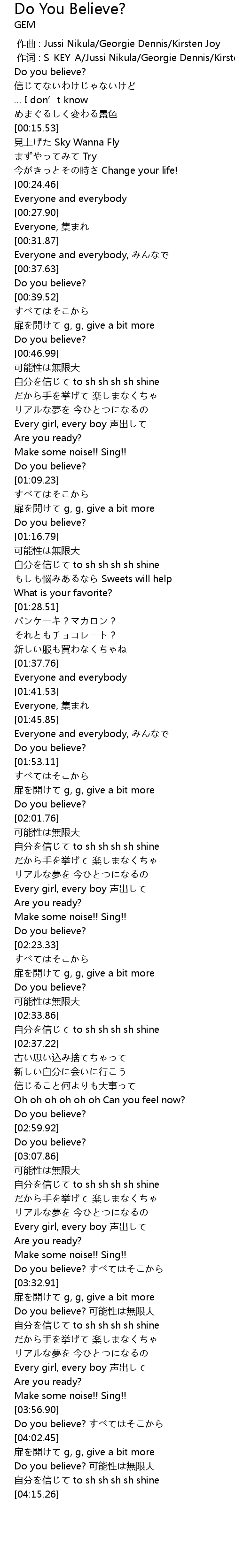 | [03:35.89] | Do you believe? 可能性は無限大 |
