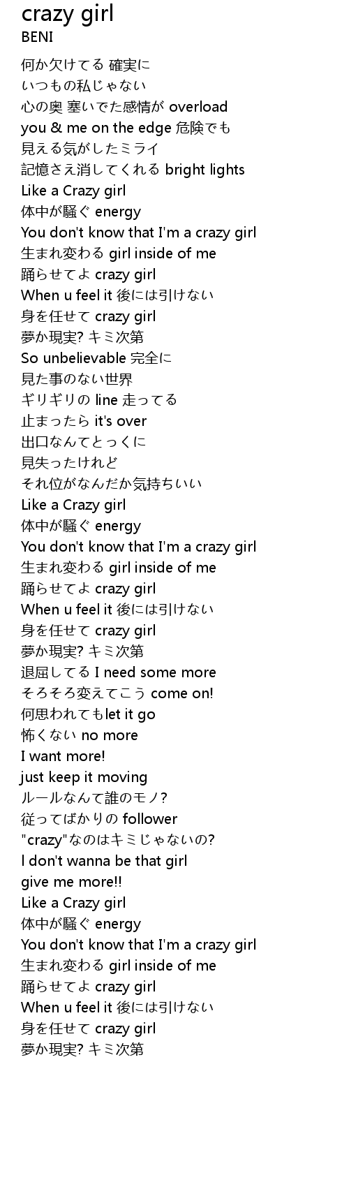 | You don' t know that I' m a crazy girl | |