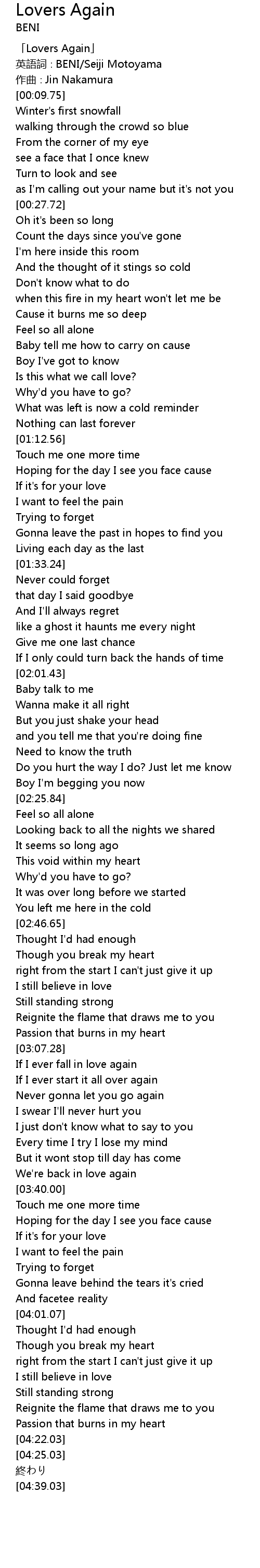 | [00:04.75] | 英語詞∶BENI/Seiji Motoyama |