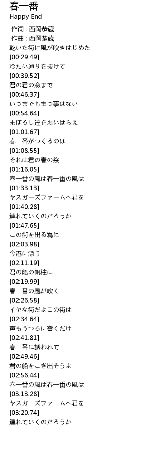 | [01:22.32] | 春一番の風は春一番の風は |
