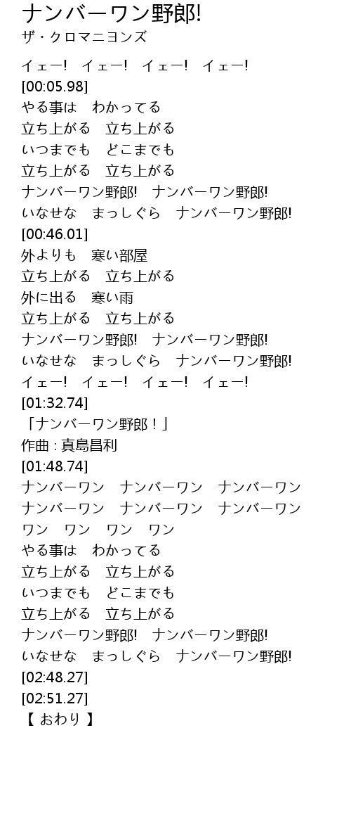| [01:59.00] | ナンバーワン ナンバーワン ナンバーワン |
