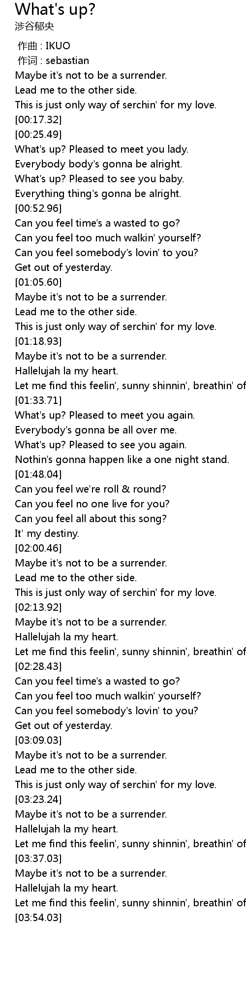 | [01:34.70] | What's up? Pleased to meet you again. |