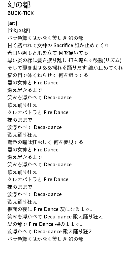 | [03:37.61] | 涙浮かべて Deca-dance 歌え踊り狂え |