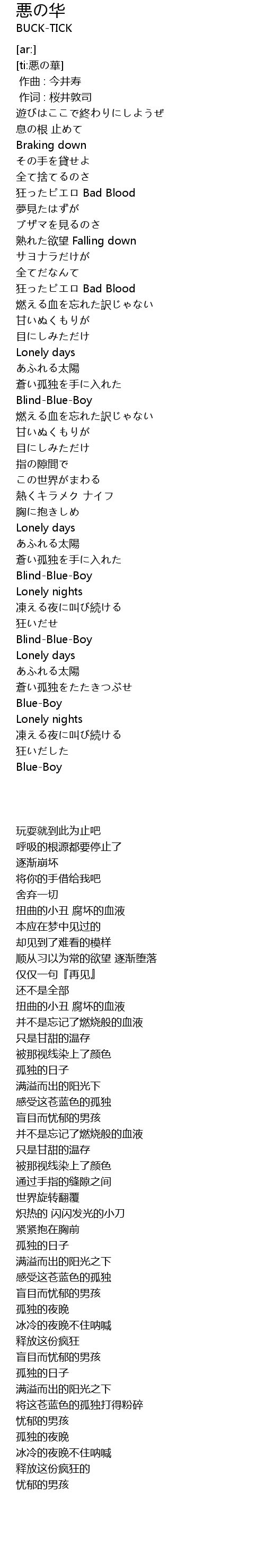| [00:46.54] | 狂ったピエロ Bad Blood |