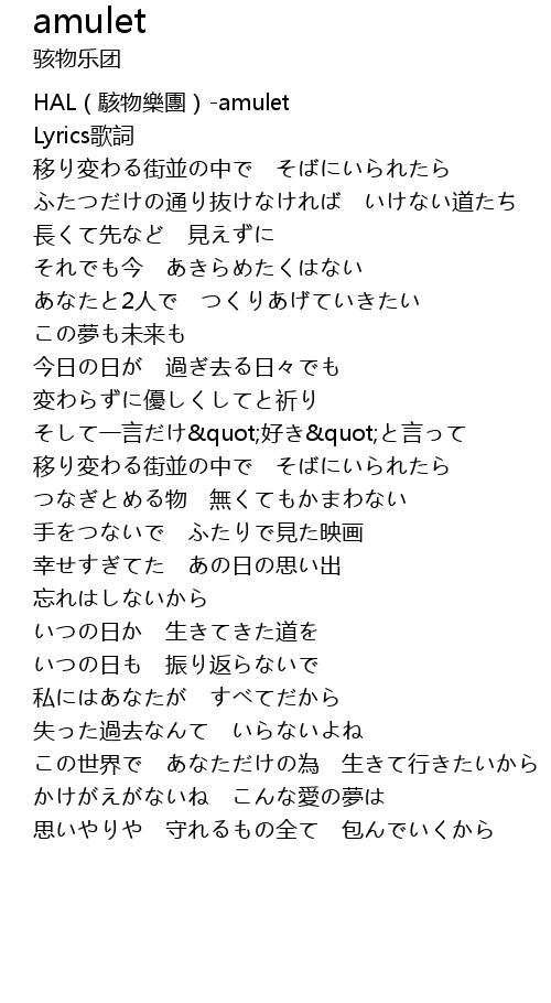 | [00:00.704] | HAL(駭物樂團)-amulet |