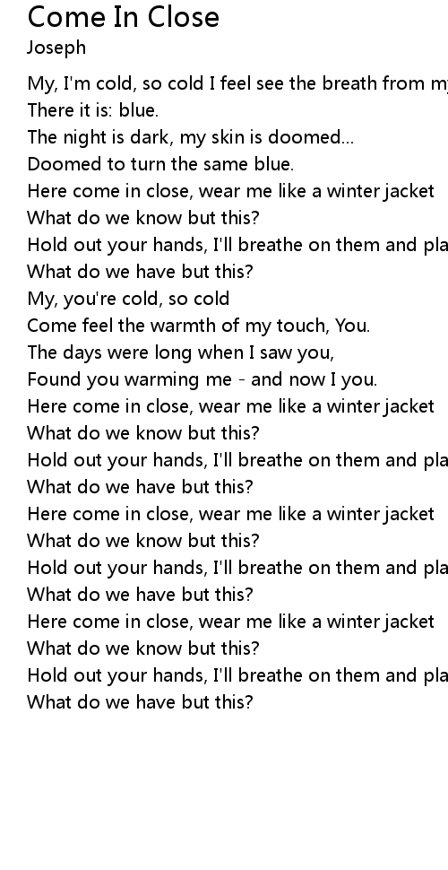 My, I'm cold, so cold I feel see the breath from my lungs |