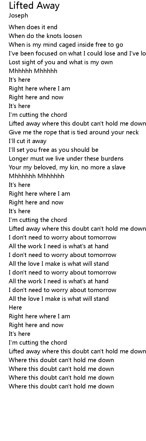 Lifted away where this doubt can't hold me down |