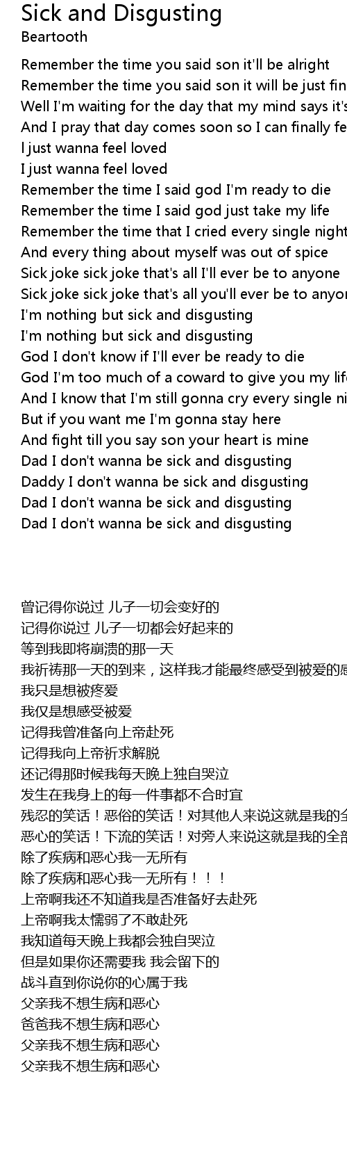 I'm nothing but sick and disgusting |