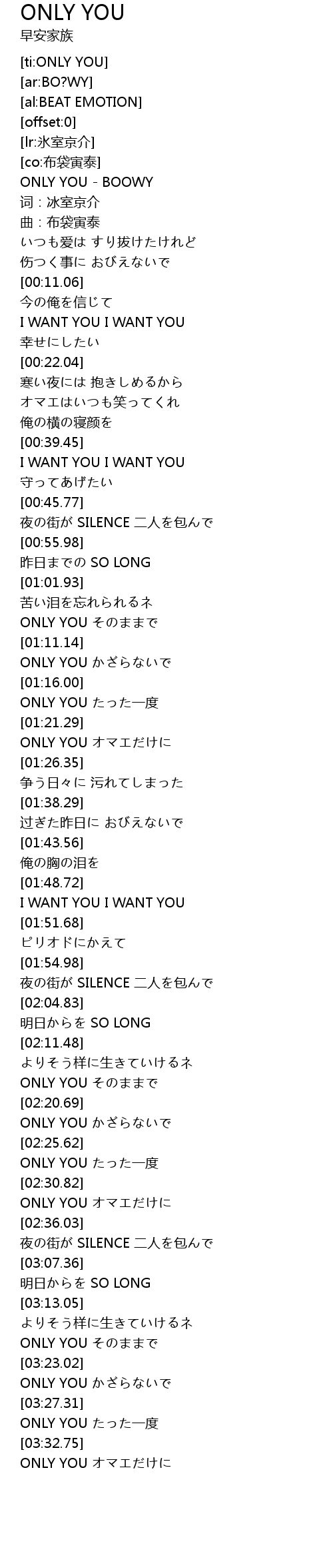 | [00:00.88] | ONLY YOU BOOWY |