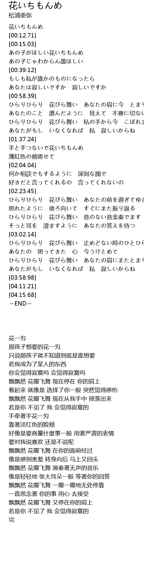 | [03:49.54] | あなたがもし いなくなれば 私 寂しいからね |