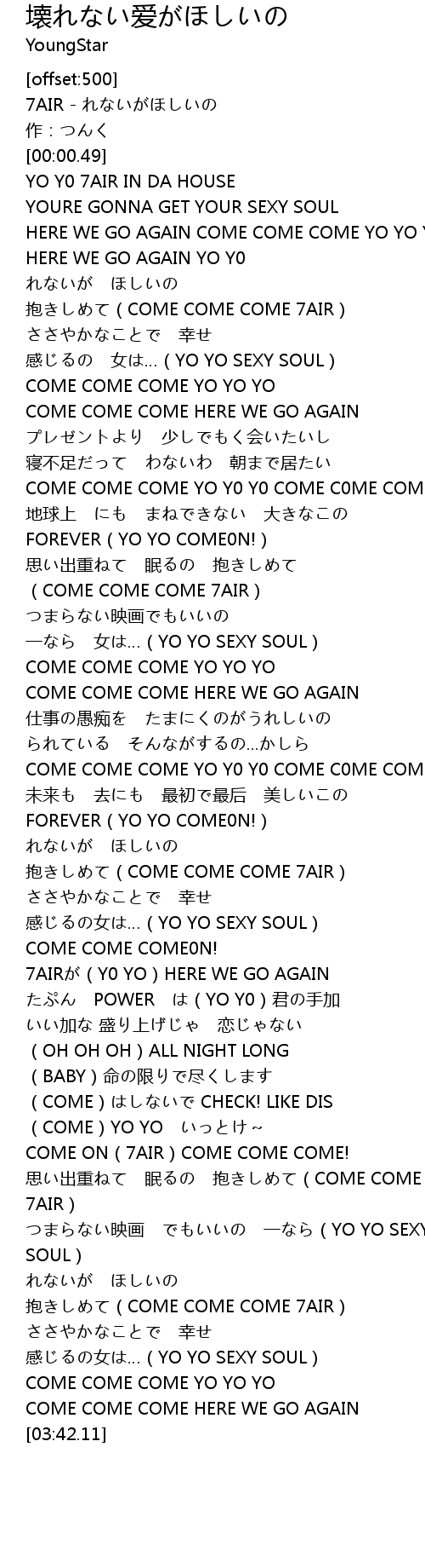 | [02:45.43] | 7AIR Y0 YO HERE WE GO AGAIN |