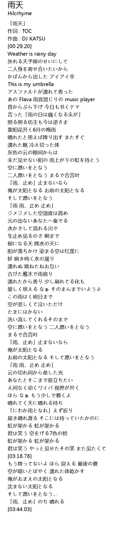 | [03:41.29] | 「雨、止め」のち 晴れる |