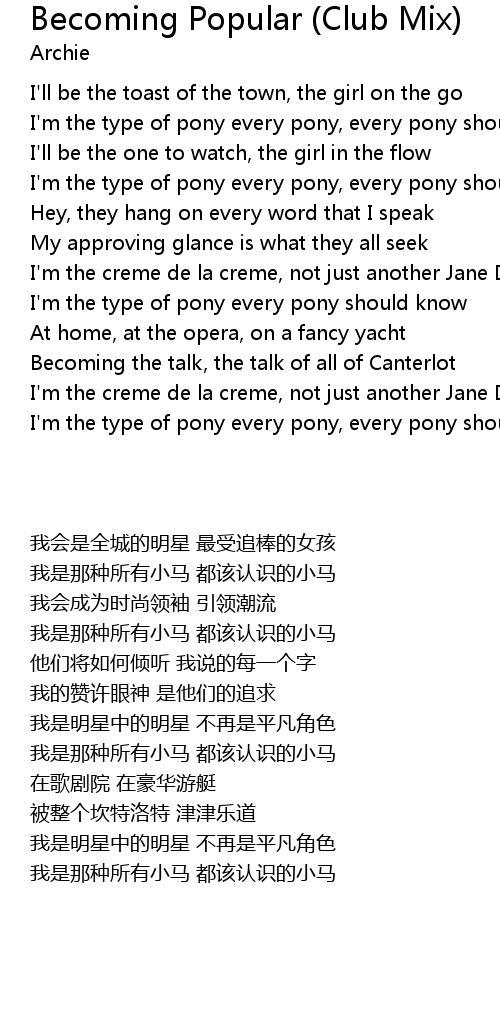 I'm the type of pony every pony, every pony should know |