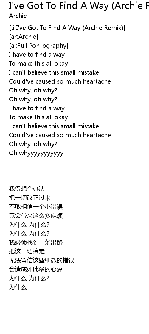 | [ti:I've Got To Find A Way (Archie Remix)] | |