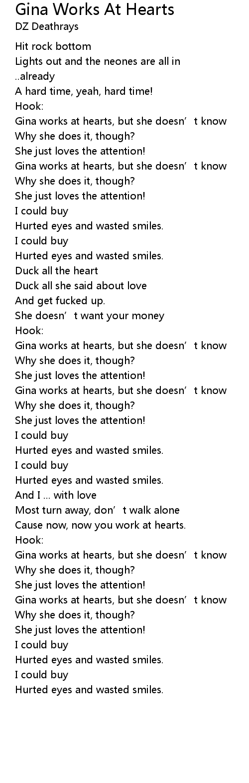 | Song | Gina Works At Hearts |