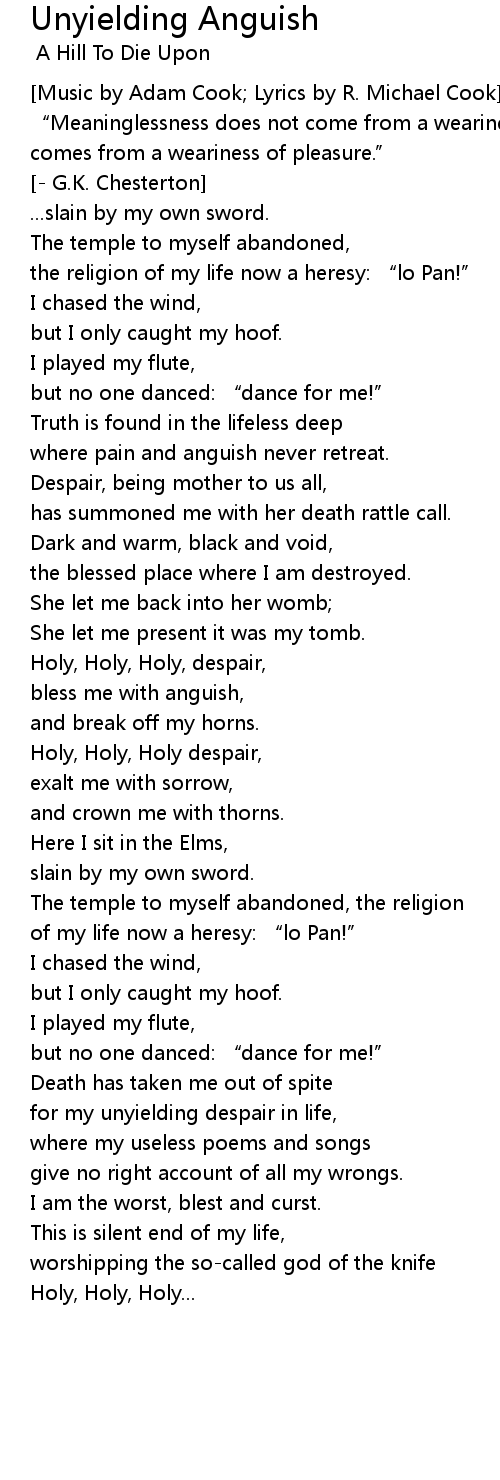 | Song | Unyielding Anguish |