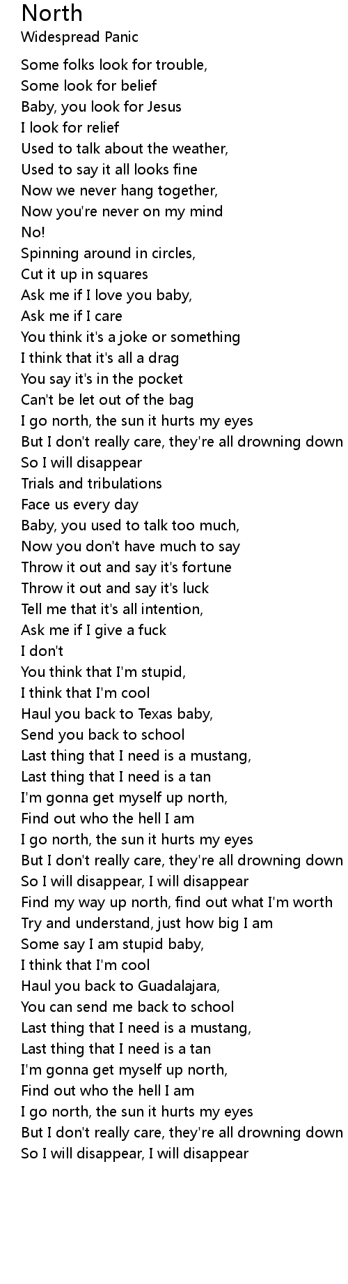 I go north, the sun it hurts my eyes |