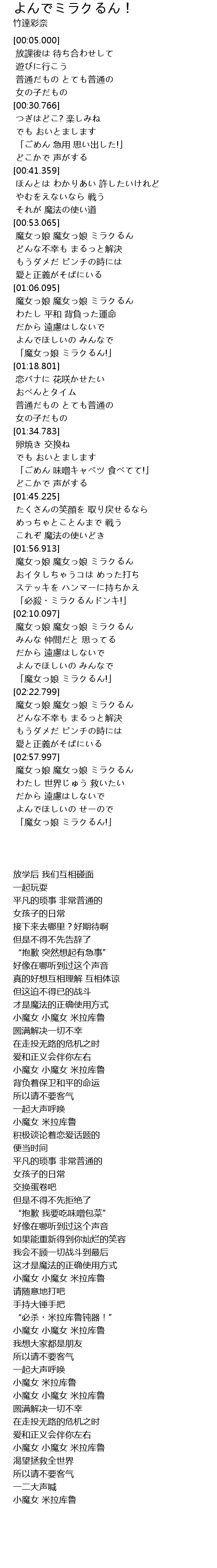 | [01:58.884] | 魔女っ娘 魔女っ娘 ミラクるん |
