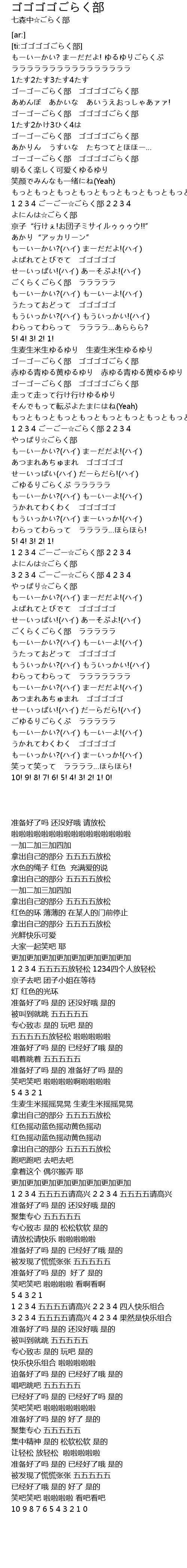 | [01:45.65] | 1 2 3 4 ごーごー☆ごらく部 2 2 3 4 やっぱり☆ごらく部 |