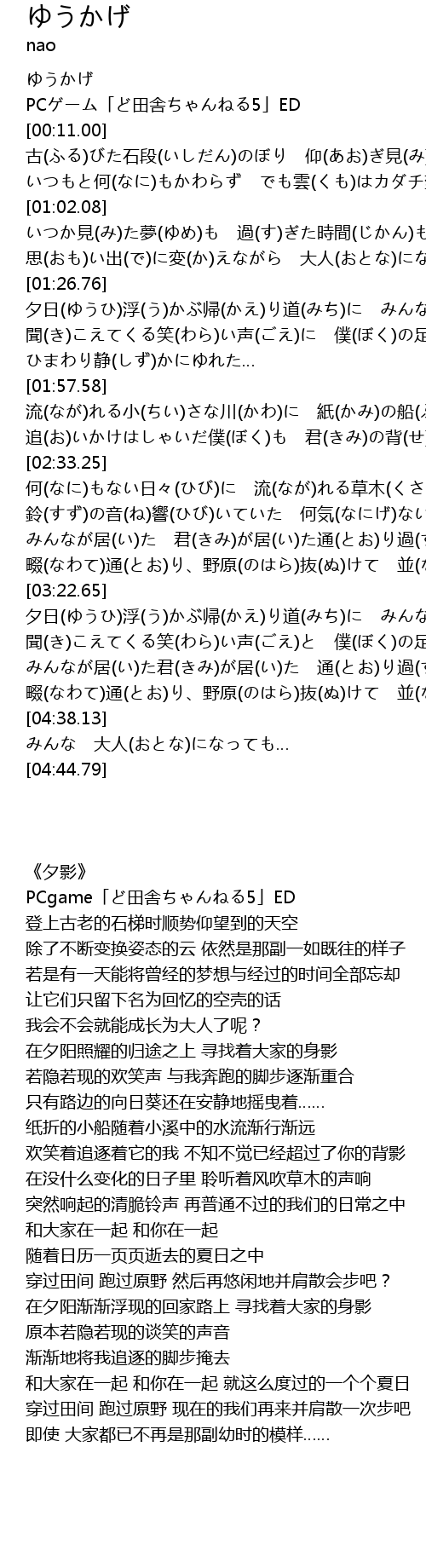 | [00:01.00] | ゆうかげ |