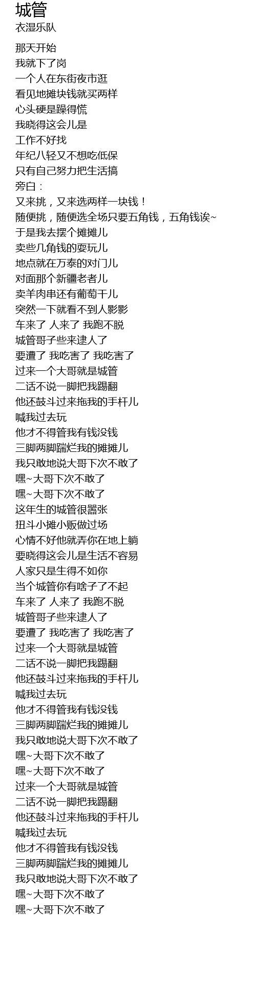 | [03:13.31] | 当个城管你有啥子了不起 |