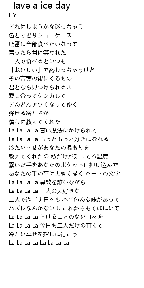 | [02:57.54] | La La La La 今日も二人だけの甘くて |