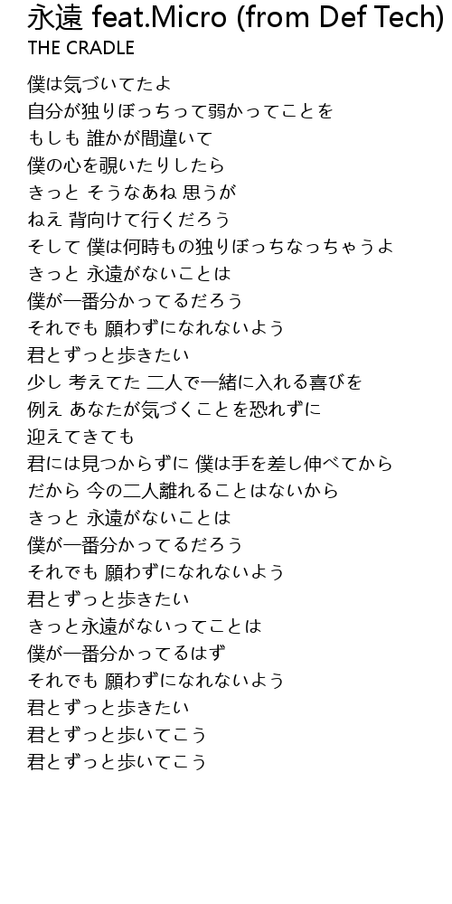 | Song | 永遠 feat.Micro (from Def Tech) |