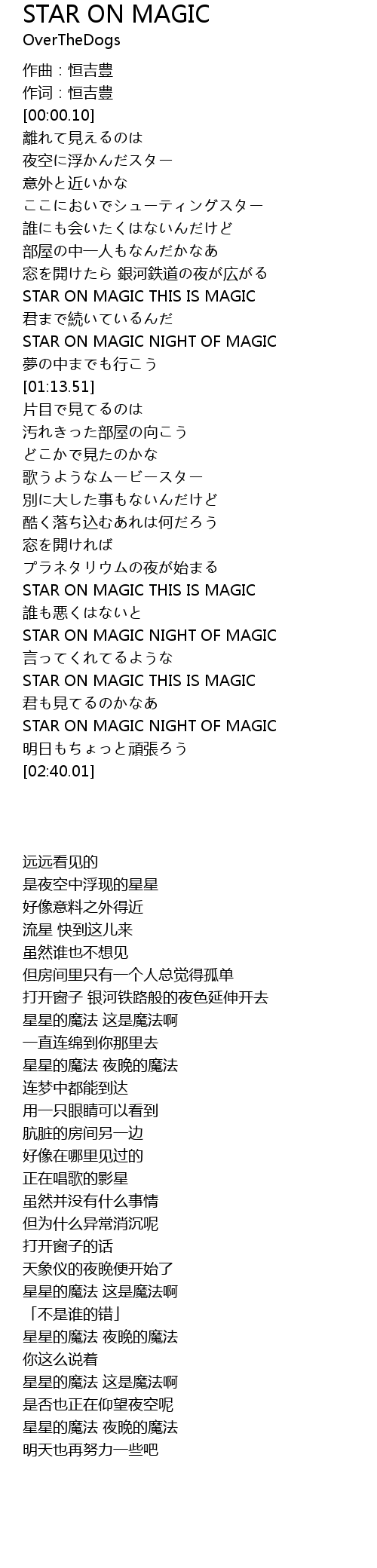 | [02:17.66] | STAR ON MAGIC NIGHT OF MAGIC |