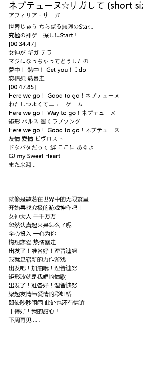 | [00:48.40] | Here we go! Good to go!ネプテューヌ |
