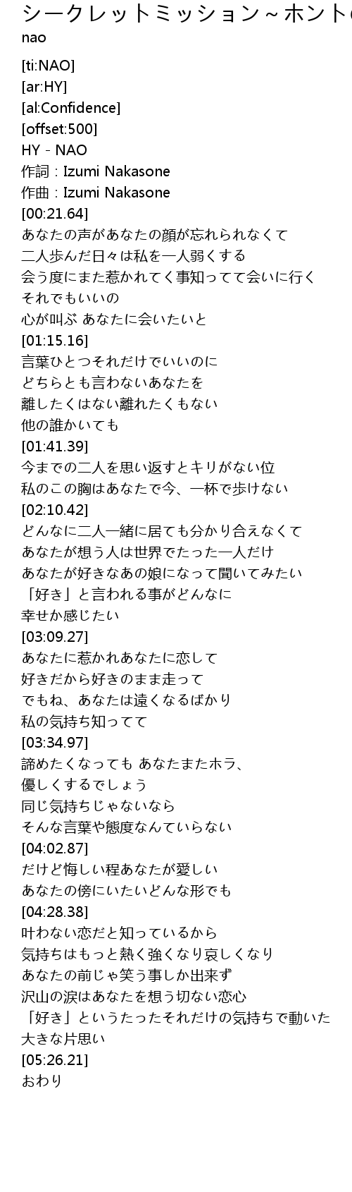 | [00:17.64] | 作詞:Izumi Nakasone |