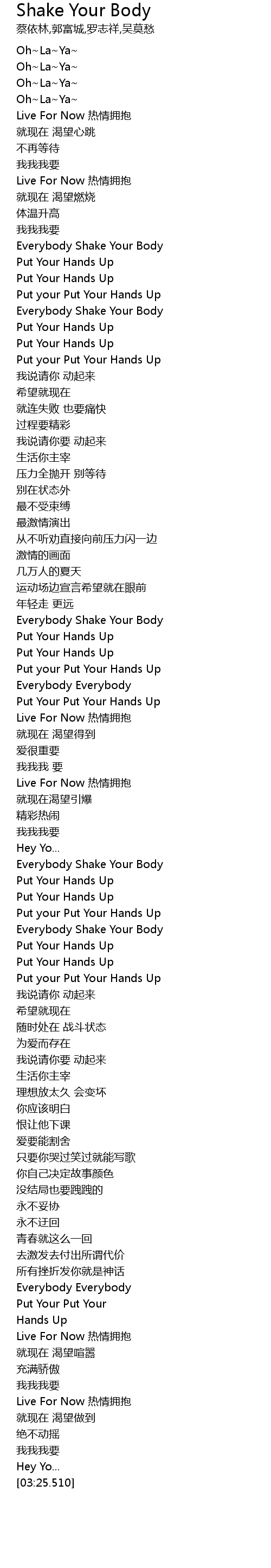 | [00:38.490] | Put Your Hands Up |